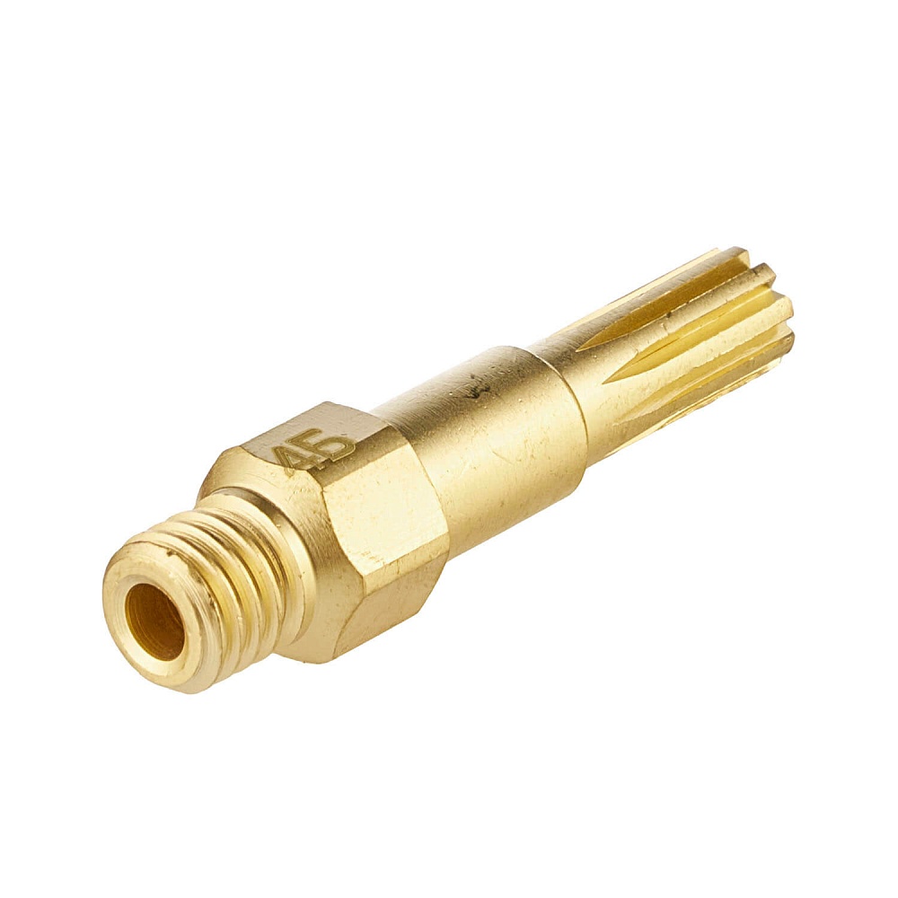 Внутренний мундштук №4Б для жидкотопливного бензинового резака РБ-300. Толщина разрезаемого металла 50–100 мм. Мундштук присоединяется (вкручивается) в головку резака при помощи резьбы М8х1. На цилиндрическую часть мундштука устанавливается катушка.