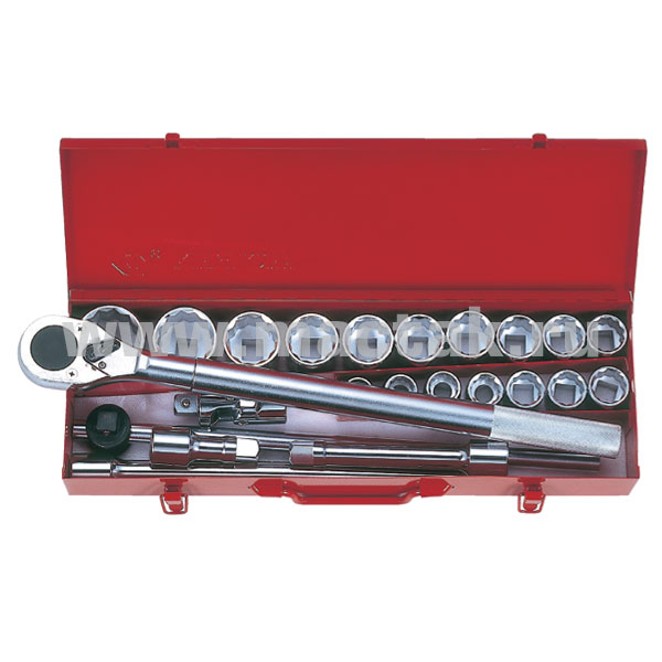 - 23 предмета - Металлический футляр 537x177x78мм - Двенадцатигранные головки