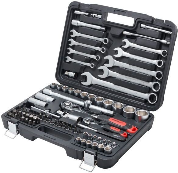 В набор входят 82 предмета, сделанных из сверхпрочной стали, что позволяет пользоваться инструментом на протяжении долгих лет.
