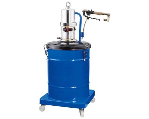 Нагнетатель густой смазки HG-77060 AE&T пневматический предназначен для подачи консистентной смазки (солидола) из стандартной бочки емкостью 50-60кг в смазываемые узлы под давлением до 300атм.