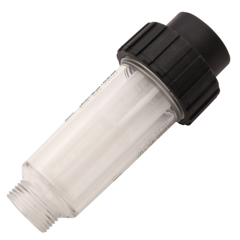 <p>Универсальный фильтр Denzel 58301 используется для очистки воды и защиты от засорения в моечных машинах высокого давления. Он устанавливается на патрубок с соединением G3/4 дюйма на мойках марки Denzel.</p><h2>Преимущества</h2><ul><li>Надежность — фильтр изготовлен из прочного пластика, устойчивого к механическим повреждениям.</li><li>Прозрачный корпус — можно контролировать степень загрязнения фильтра, не разбирая его.</li><li>Простое обслуживание — фильтр легко разбирается, что упрощает его очистку.</li></ul>