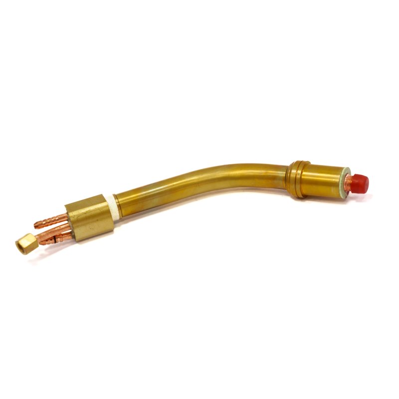 Гусак – заменяемая часть горелки для полуавтоматической сварки. Замена гусака может потребоваться в случае выхода из строя данного элемента либо необходимости выполнения специфичных сварочных задач. На гусак устанавливаются сопло и наконечник. В рукоятке горелки гусак подключается к силовому кабелю и шлангу подачи газа. Если горелка оснащена жидкостным охлаждением, на гусаке появляются фитинги для подключения воды.