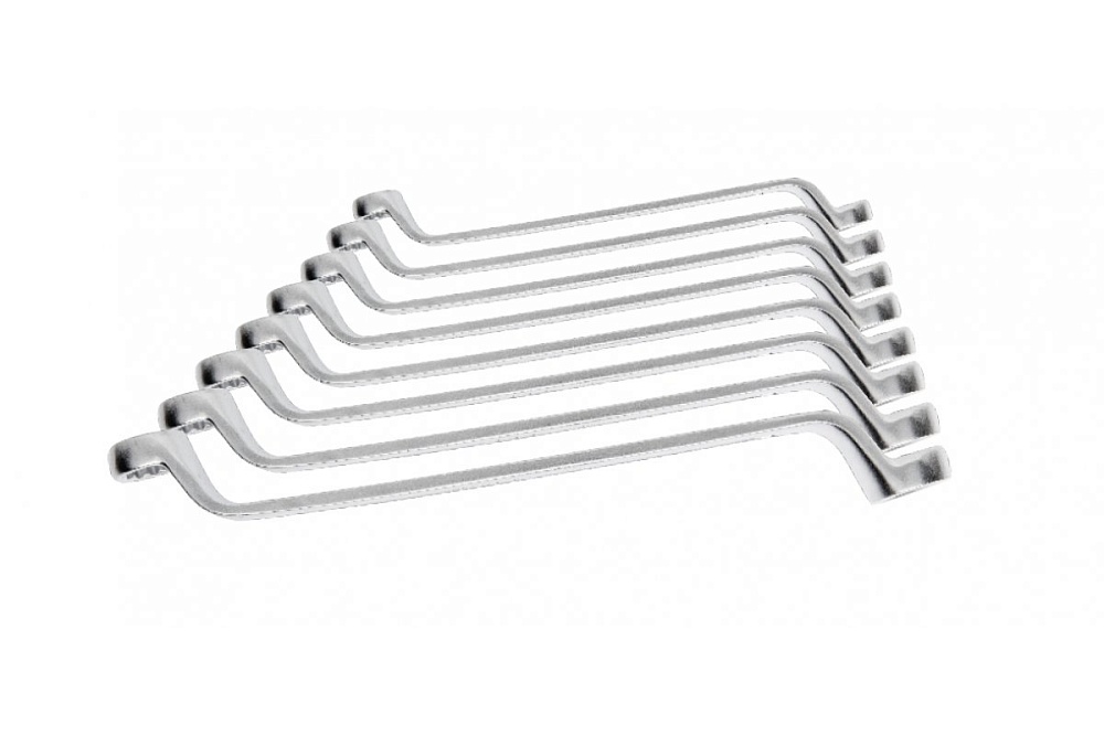 Набор изогнутых накидных ключей. Ключи изготовлены из высококачественной легированной стали CrV, устойчивые к деформации.