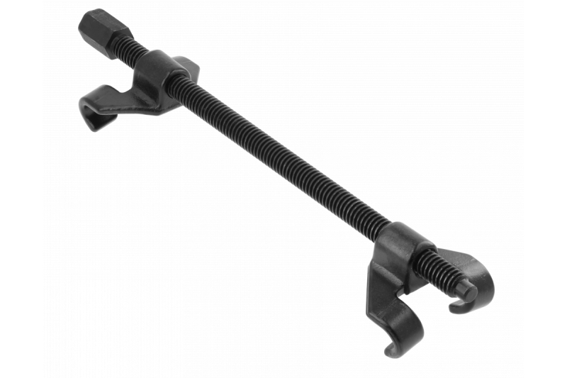 Стяжка пружин незаменима при профессиональном обслуживании шасси. Подходит для всех типов рессор в стойках типа макферсон (MacPherson) и независимых рессор. Стяжка работает с храповым механизмом 1/2". Она имеет тонкую резьбу, что облегчает работу под нагрузкой пружины. Работа с устройством полностью безопасна благодаря специально профилированным двуплечим рукояткам.