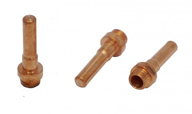 Катод - расходная часть плазмотрона. Оснастку изготавливают из сплава меди и латуни. Данный сплав обладает отличными показателями токопроводимости, высокими прочностными характеристиками, а так же способствует лучшему теплоотводу. Чаще всего для работы в нейтральных плазмообразующих средах в качестве сердечника электрода используют вольфрам, в окислительных средах применяют катоды из циркония или гафния.