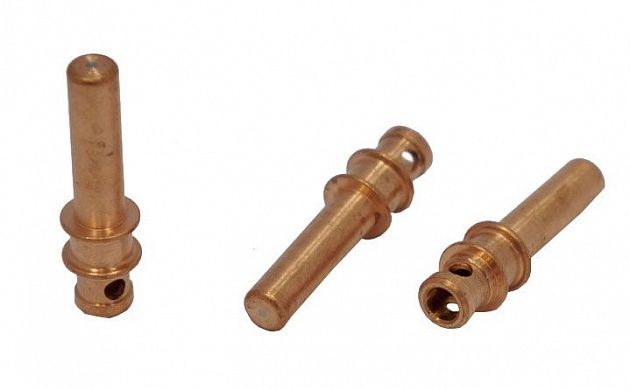 Катод - расходная часть плазмотрона. Оснастку изготавливают из сплава меди и латуни. Данный сплав обладает отличными показателями токопроводимости, высокими прочностными характеристиками, а так же способствует лучшему теплоотводу. Чаще всего для работы в нейтральных плазмообразующих средах в качестве сердечника электрода используют вольфрам, в окислительных средах применяют катоды из циркония или гафния.