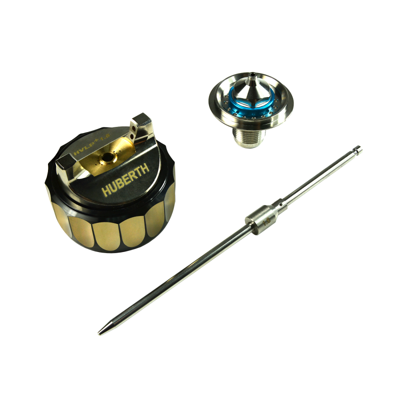 Сменный комплект в составе воздушной головки, окрасочной иглы и дюзы диаметром 1.8 мм для краскопульта Huberth HVLP+ RP15010HV.