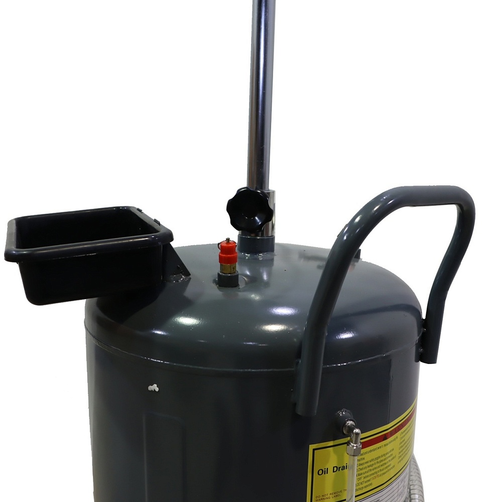 Установка KRAFTWELL, модель KRW1803.80L предназначена для сбора масла, антифриза и других технических жидкостей методом слива самотеком. Высота приемной ванны регулируется позволяя точно подобрать удобное положение при работе, а также защитить от разбрызгивания масла.  У основания приемной ванны расположен шаровый кран, перекрывающий слив жидкости в основную емкость до контроля ее состояния. Индикатор уровня, расположенный на емкости, показывает ее наполненность и вовремя сигнализирует о необходимости опустошения. Для слива жидкости из установки необходимо подключить сжатый воздух к штуцеру, расположенному в верхней части емкости. Под давлением вся жидкость выливается через гибкий шланг с жестким наконечником в емкость большего объема и затем утилизируется. Давление воздуха контролируется по манометру. Для безопасности на корпусе установлен клапан избыточного давления, который предохраняет стенки от деформации и разрушения.