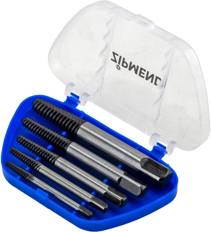 - Набор экстракторов ZS-H030002 применяется для выкручивания сломанных винтов и шпилек из резьбовых отверстий без повреждений – спасение дорогостоящих изделий.