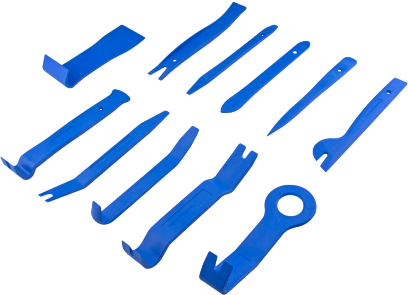 - Набор применяется для снятия панели приборов, центральной консоли, демонтажа аудиосистем, элементов обшивки салона и декоративных накладок автомобиля.
