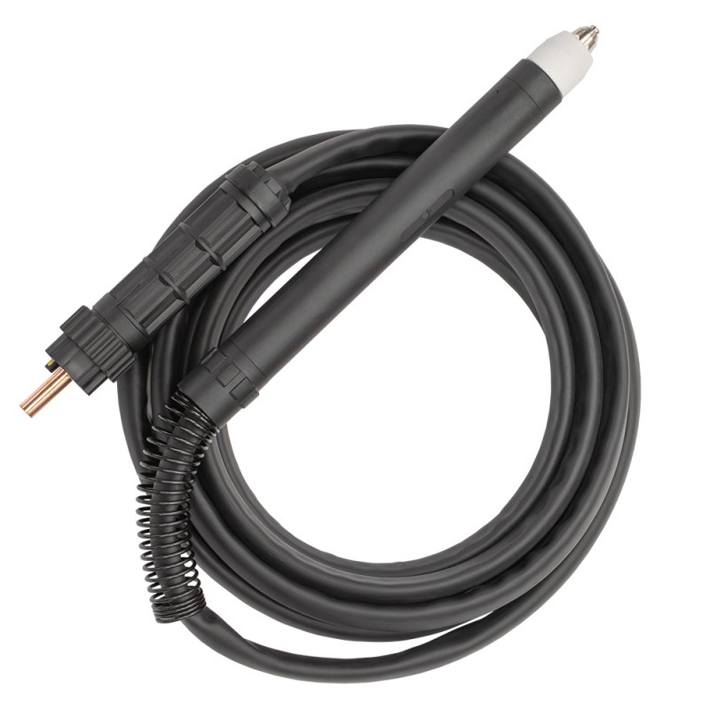 Плазмотрон IPT 60 BPR0406 с пневматическим поджигом подключается к аппаратам воздушно-плазменной резки через центральный Евро адаптер (4 провода для подключения). Максимальная толщина реза 19 мм. Максимальный ток реза при ПВ 60% составляет 60 Ампер. Длина кабеля 6 метров.