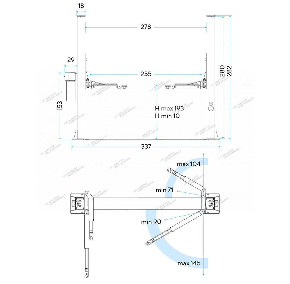 Подъемник двухстоечный 4 т с нижней синхронизацией, H=2,8 м, 220 В, синий . STX40TT_220 купить в Краснодаре цена ✅ - Все для СТО