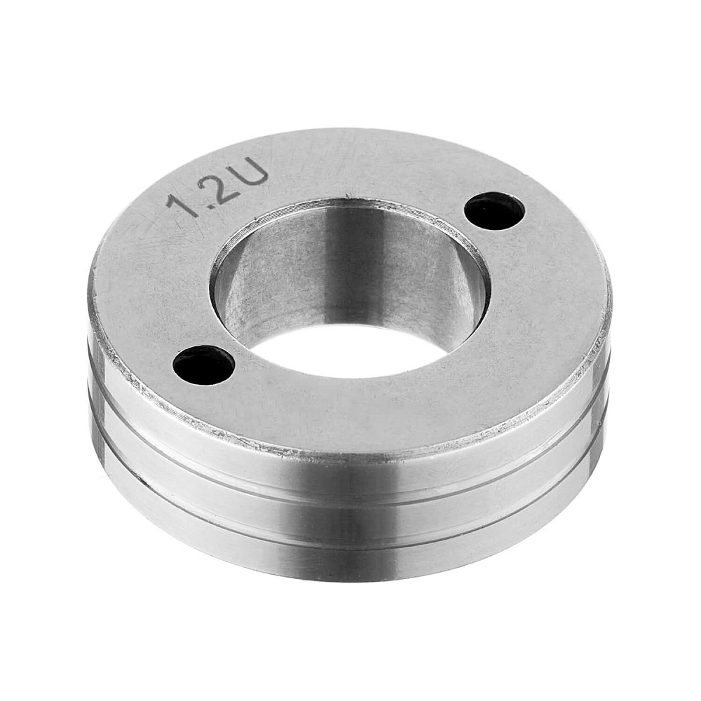 Это сменный элемент подающего механизма, который подбирается в соответствии с видом сварочной проволоки и ее диаметром. Данные ролики предназначены для работы с алюминиевой проволокой диаметром 1,0–1,2 мм. Размер роликов 37х19х12 мм. Подающие ролики имеют две направляющие канавки U-образной формы. При изменении сечения проволоки необходимо перевернуть ролик нужной стороной и использовать его далее.