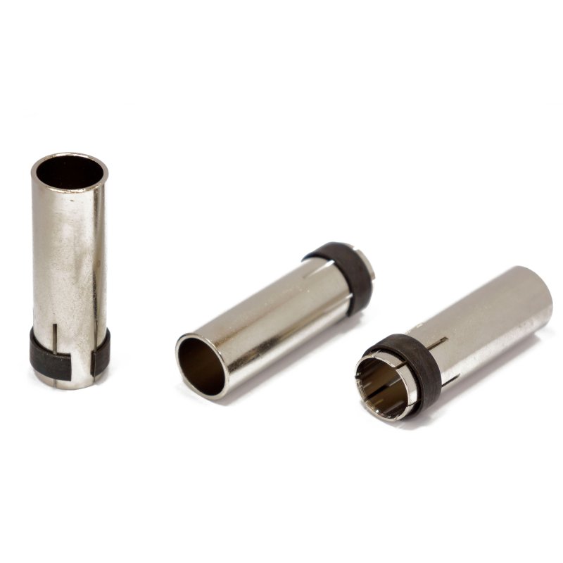 Сопло MIG-MAG - это расходная часть горелки, которая отвечает за формирование струи защитного газа в процессе полуавтоматической сварки. В процессе работы сварочные брызги налипают на сопло, а продолжительные работы на максимальных токах выжигают сопло изнутри. Поэтому деталь приходится периодически менять. Для того, чтобы продлить жизнь расходнику – сопло необходимо время от времени зачищать.