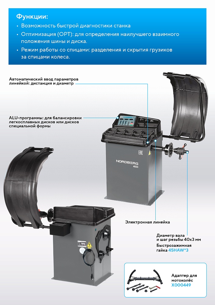 Балансировочный стенд NORDBERG 4523(G) позволит максимально точно и за минимальный промежуток времени провести работы, связанные с балансировкой колес, повысив качество обслуживания клиентов в автосервисах и шиномонтажных мастерских.