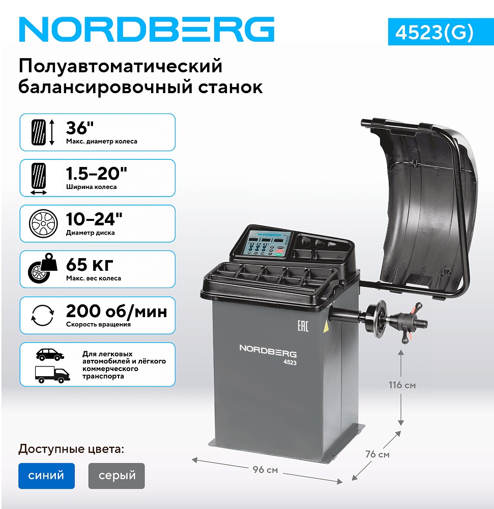 Балансировочный станок NORDBERG 4523(G) – специализированное оборудование для балансировки колес легкового транспорта и микроавтобусов.