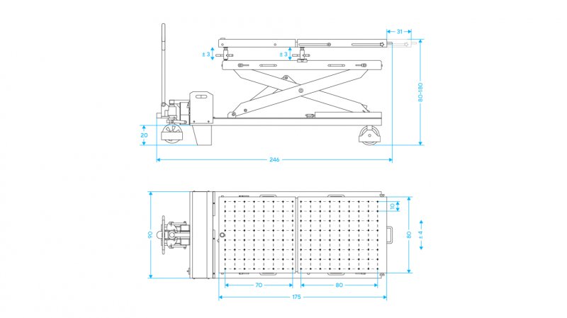 Нижняя платформа имеет боковую регулировку (±4 см) для точного позиционирования относительно посадочного места;
