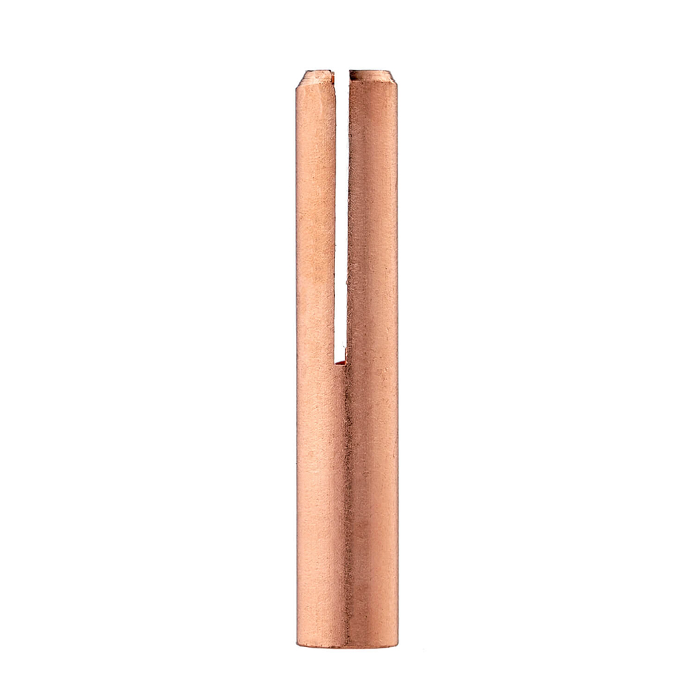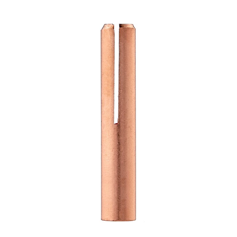Цанга выполнена из меди и вставляется в держатель цанги. Служит для плотной фиксации вольфрамового электрода в горелке TIG. Диаметр цанги 3,0 мм и он должен совпадать с диаметром вольфрамового электрода, а также с диаметром держателя цанги. Цанга совместима с горелками TIG TP 9/20/25.