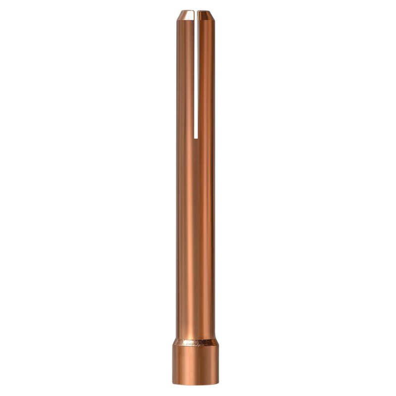 Цанга диаметром 3,2 мм выполнена из меди и вставляется в держатель цанги. Служит для плотной фиксации вольфрамового электрода в горелке TIG. Диаметр цанги должен совпадать с диаметром вольфрамового электрода, а также с диаметром держателя цанги. Совместима с горелками TIG серии TP 17/18/26.