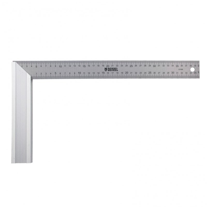 <p>Стальной угольник Denzel 32398 длиной 400 мм, с градуировкой, алюминиевым основанием и полотном из нержавеющей стали, используется для построения и контроля углов. Будет полезен для выполнения столярных и строительных работ.</p><h2>Преимущества</h2><ul><li>Прочность и долговечность — основание изготовлено из анодированного алюминия, рабочее полотно — из нержавеющей стали.</li><li>Надежная конструкция — линейка соединена с основанием при помощи заклепок.</li><li>Удобный хват — благодаря ребристой поверхности основание не выскальзывает из ладони.</li><li>Комфортная эксплуатация — двухсторонняя измерительная шкала облегчает работу.</li><li>Удобное хранение — благодаря специальному отверстию инструмент можно подвешивать на крючок или гвоздь.</li></ul>