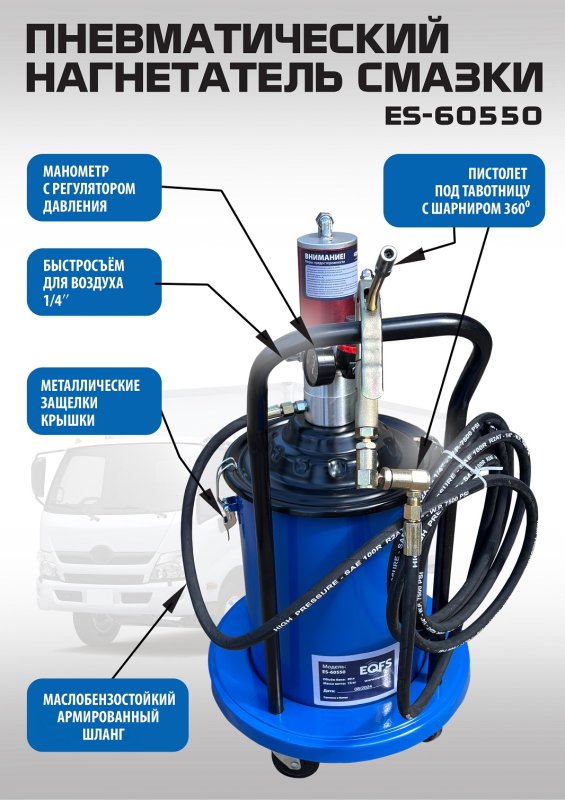 ES-60550 Нагнетатель смазки пневматический купить в Краснодаре цена ✅ - Все для СТО