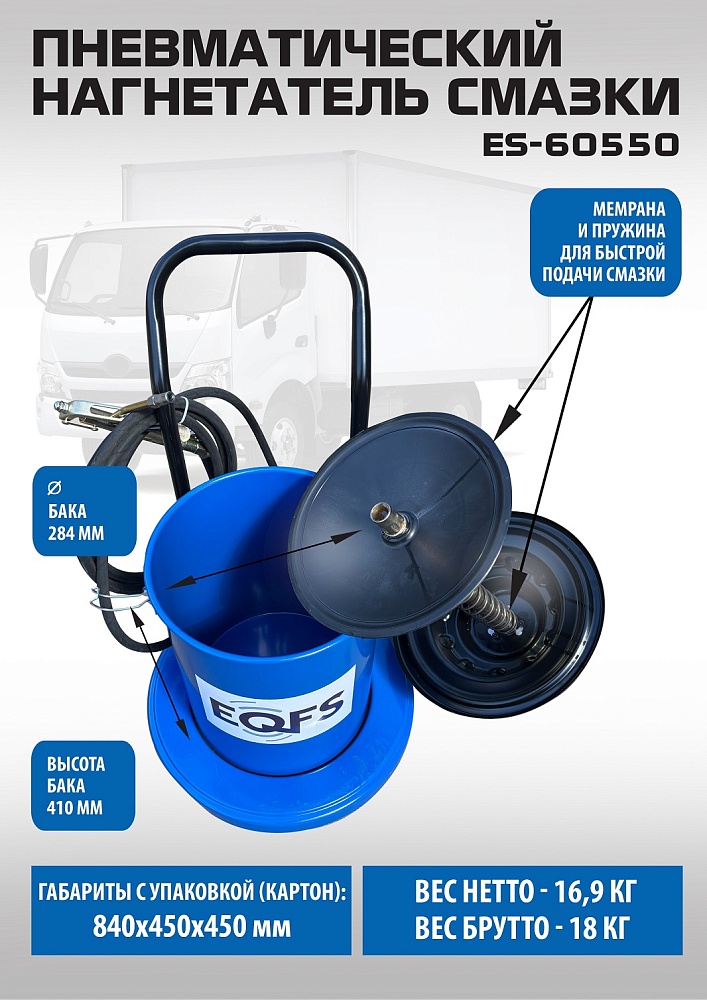 Технические особенности нагнетатель смазки пневматический ES-60550: