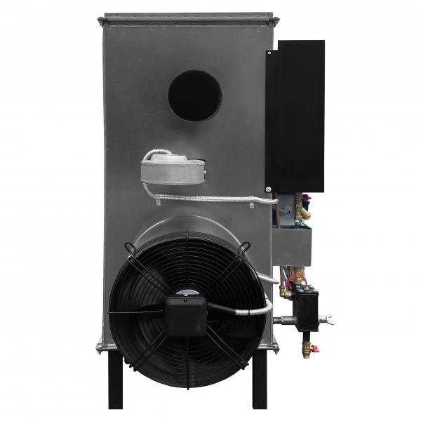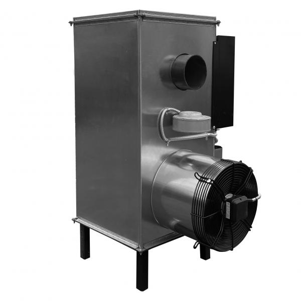 Мощность регулируется от 10 до 60 кВт, что позволяет адаптировать печь под любую площадь — от небольшого бокса до просторного ангара (до 3000 м³).