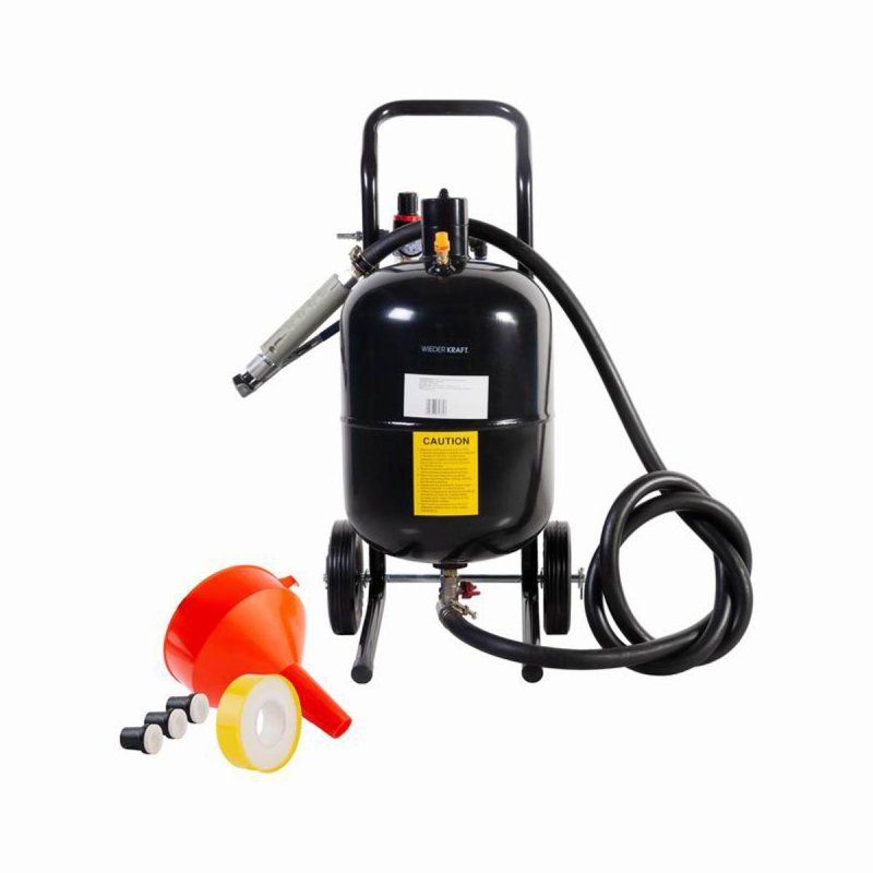 Мобильный пескоструйный аппарат WDK-82019 предназначен для сухой очистки металлических поверхностей от ржавчины, окалины, краски, различных загрязнений.
