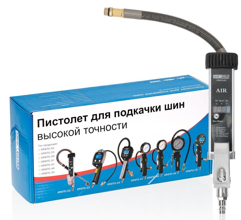 KRWTG-D6 KraftWell Пистолет для подкачки шин. В цветной коробке. Цифровой манометр. Давление до 7 бар.