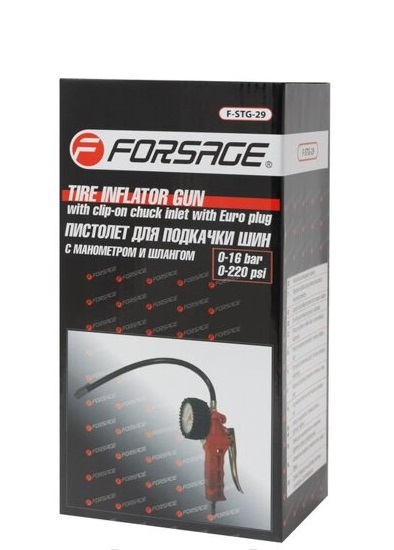 Состав: Пистолет для подкачки шин с манометром и шлангом (0-16Bar) Forsage F-STG-29