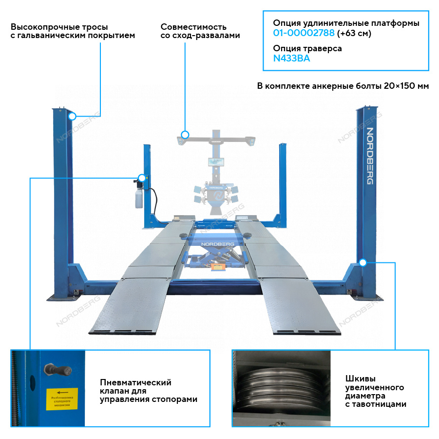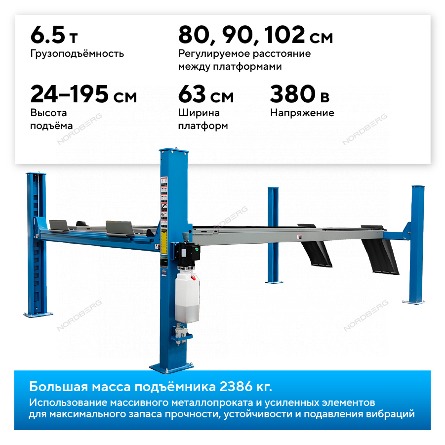 Подъемник четырехстоечный 6,5 т, для сход-развала, синий NORDBERG 4465B_N433BA купить в Краснодаре цена ✅ - Все для СТО
