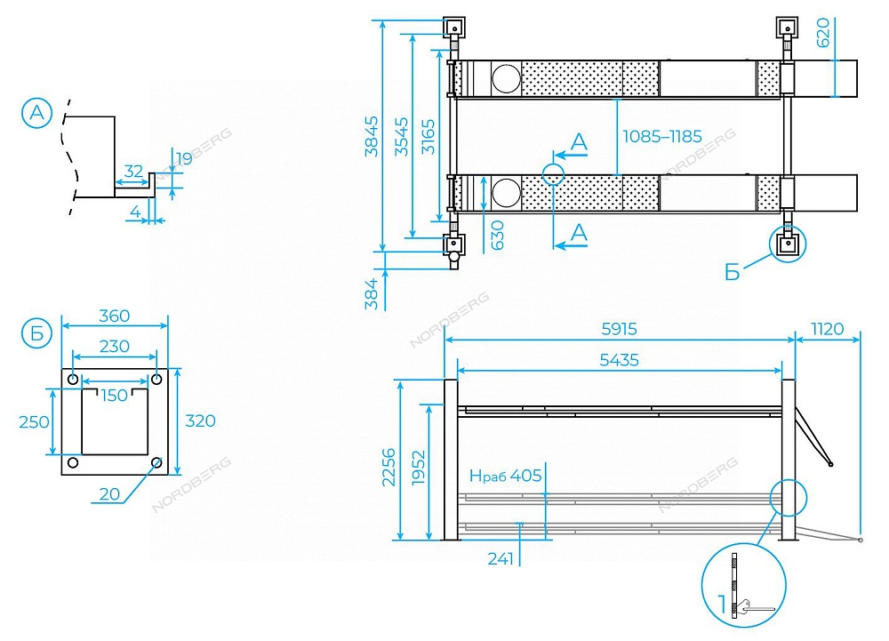 • Анкерные болты в комплекте — 20×150 мм, для надёжной установки подъёмника.