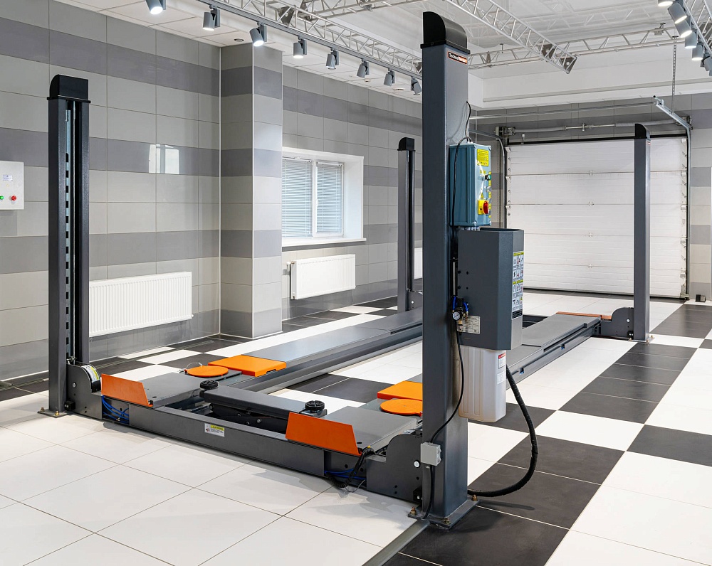 Подъёмник позволяет проводить диагностику, обслуживание и ремонт легковых автомобилей и небольших грузовиков, в частности, проводить работы по измерению и регулировке углов установки колёс.