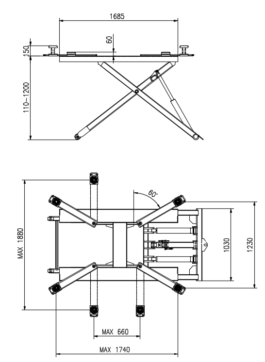 • Высота подъема: 1200 / 1260 / 1305 / 1375 мм