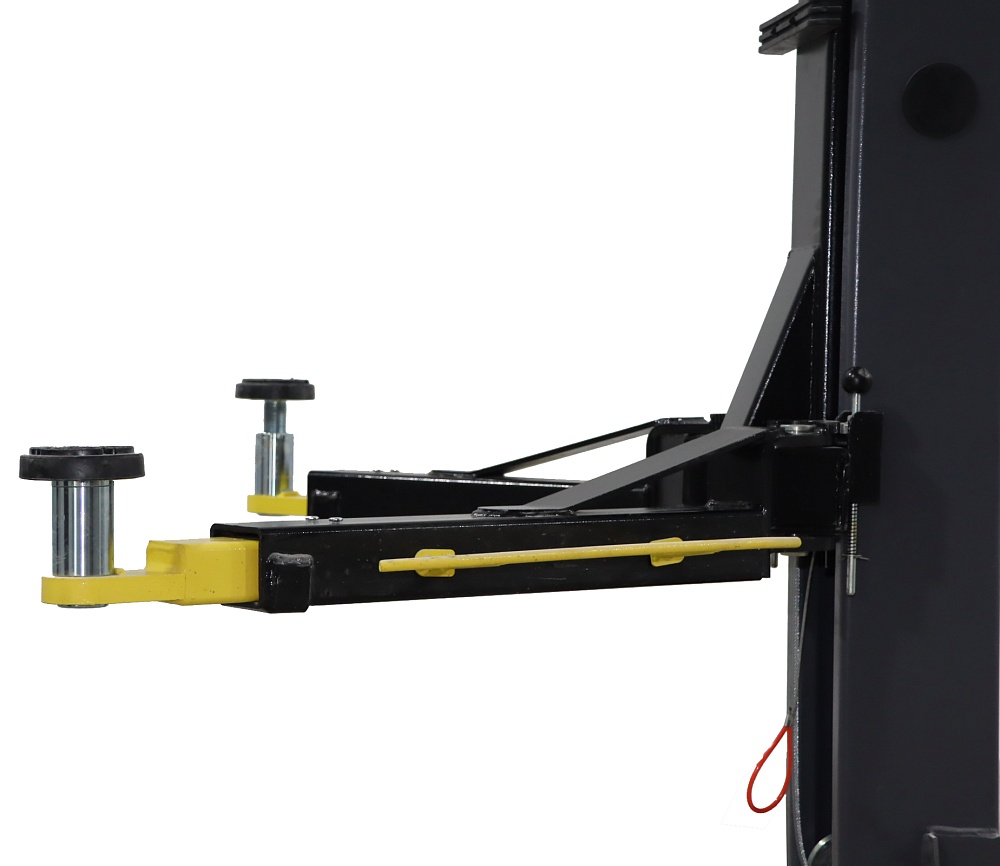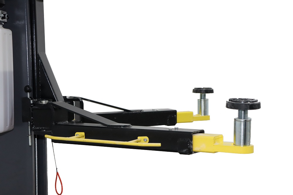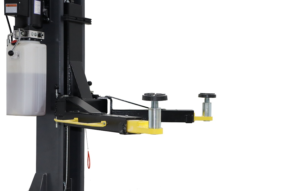 Электрогидравлический двухстоечный подъемник с асимметричной конструкцией, работающий по принципу верхней синхронизации.