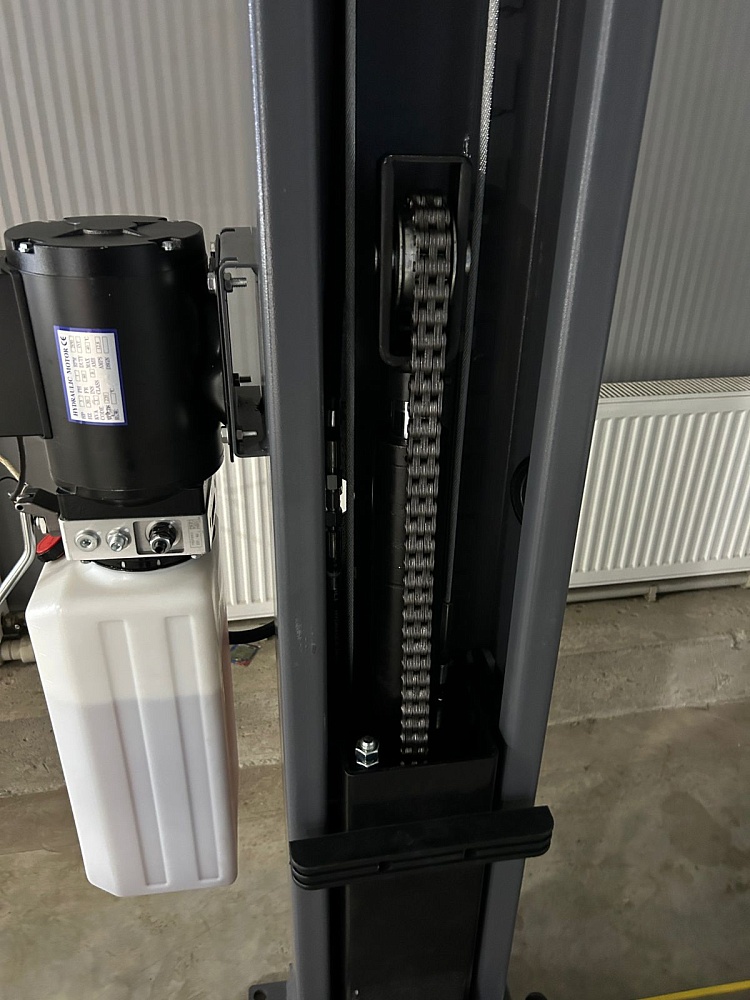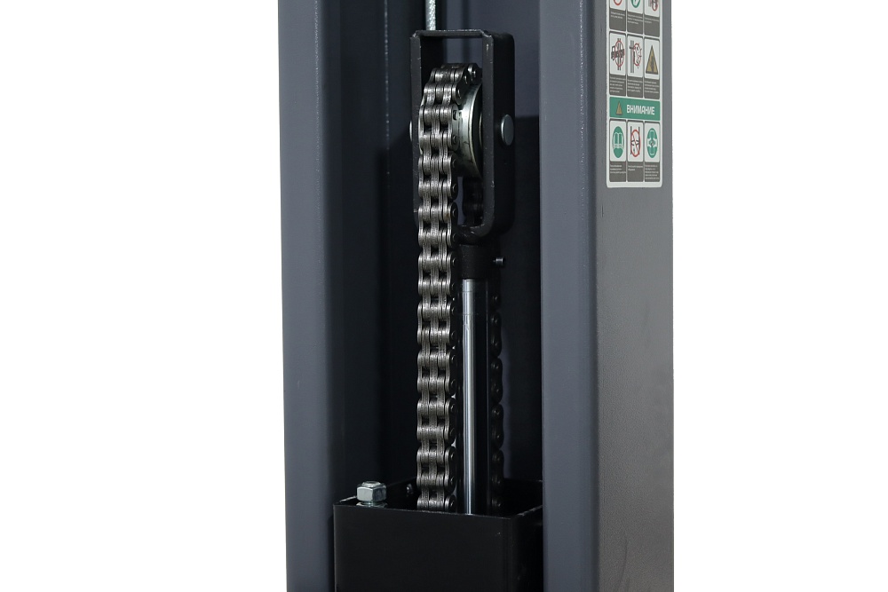 Два гидравлических цилиндра с цепным приводом каретки