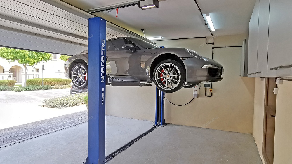 Подъемник 220V 2х стоечный 4т, со снятием стопоров с одной колонны (синий) NORDBERG N4120BM-4B купить в Краснодаре цена ✅ - Все для СТО