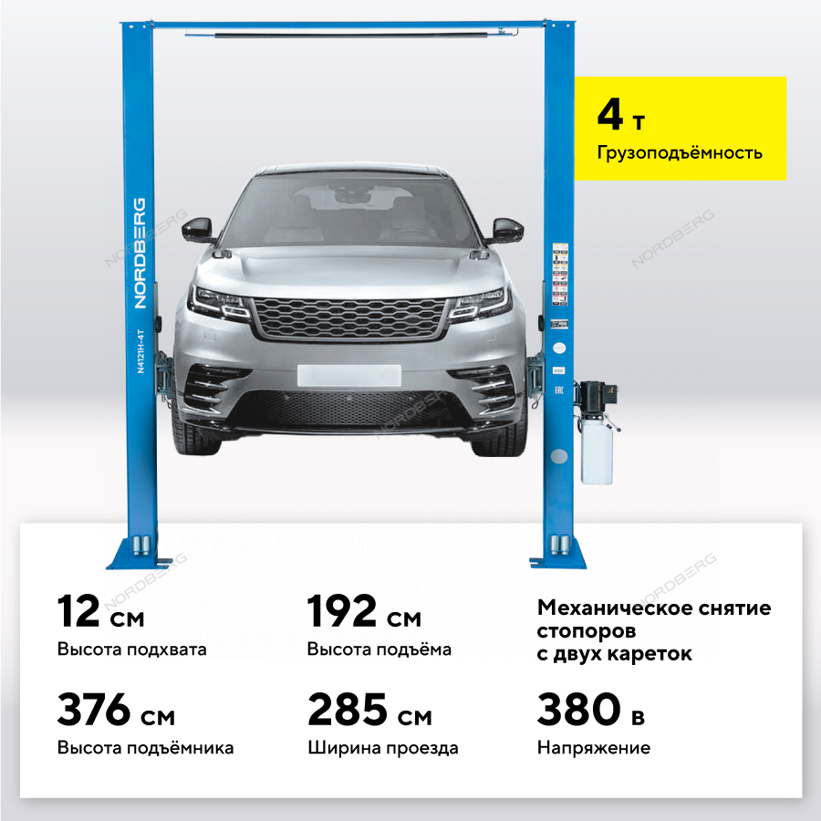 Подъемник 380V с верхней синхронизацией NORDBERG N4121H-4T купить в Краснодаре цена ✅ - Все для СТО