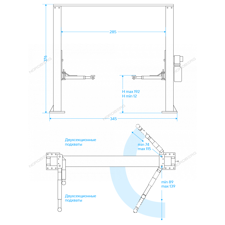 NORDBERG N4121H-4T_380 — электрогидравлический двухстоечный подъёмник с верхней синхронизацией, грузоподъёмностью 4 тонны, 380 В.