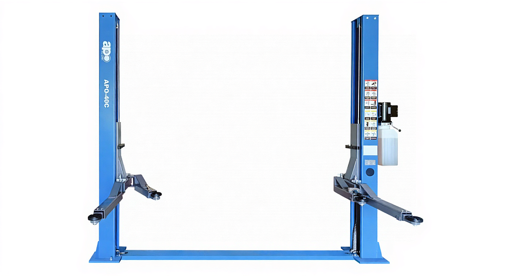 Двухстоечный подъемник APO-40C – безопасное и надежное оборудование для проведения различных видов работ по обслуживанию и ремонту автотранспорта в автосервисах и СТО.