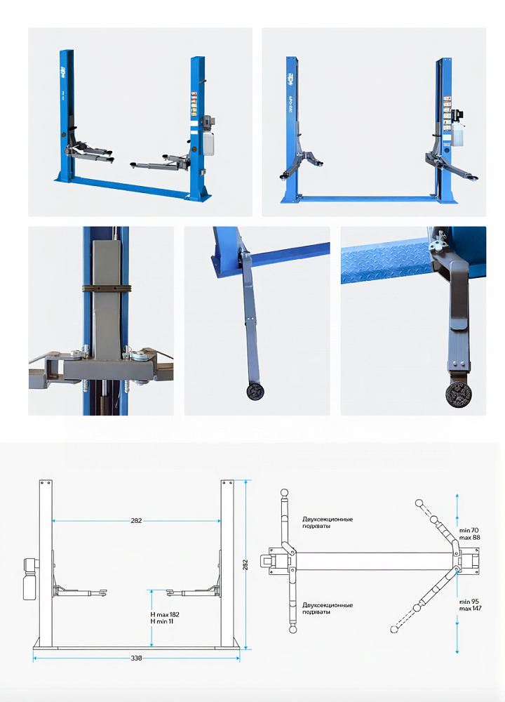 Высота подхвата подъемника позволяет обслуживать автомобили с низким клиренсом.