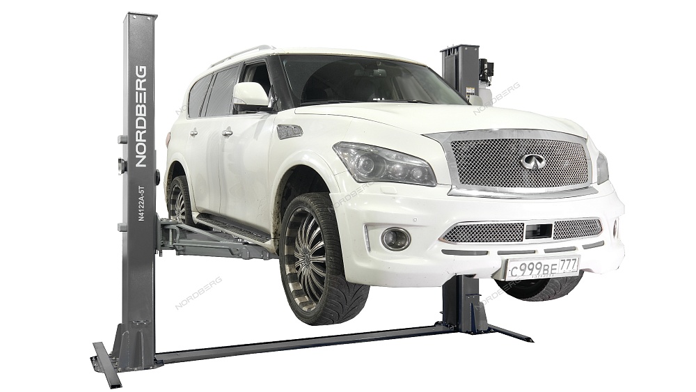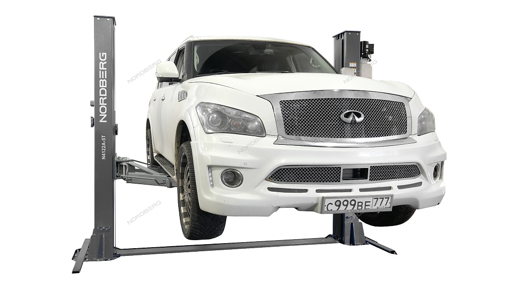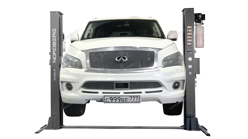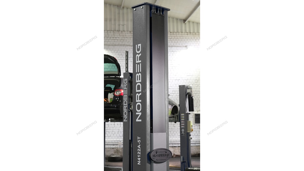Подъемник двухстоечный 5 т, нижняя синхронизация, с электростопорами, 380 В, серый NORDBERG N4122AE-5G_380 купить в Краснодаре цена ✅ - Все для СТО