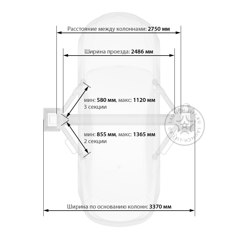 Двухстоечный подъемник Launch TLT-235SBA 220V для обслуживания легковых автомобилей и микроавтобусов. Питание 220 Вольт.