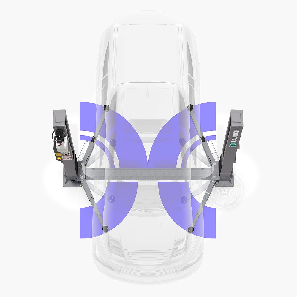 Двухстоечный электрогидравлический подъемник  г/п 4т Launch TLT240SBA с нижней синхронизацией, симметричным расположением стоек и электростопорами.