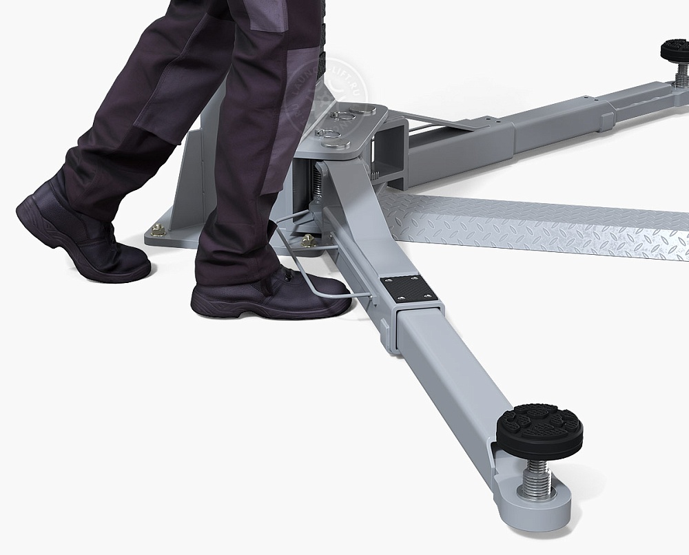 Управление стопорами с одной колонны при помощи автоматизированного пульта управления. Расположение гидростанции в верхней части колонны. Универсальные лапы подхвата  (длина передних – до 1120 мм, задних - 1365 мм). Двойной защитный трап. Усиленная конструкция элементов подъемника, шкивы увеличенного диаметра. Толщина металла профиля стойки – 5 мм. Элементы защиты в базовом комплекте поставки (гидравлические парашютные клапаны, защита движущихся механизмов, защитные рамки на лапах подхвата, резиновые накладки по всей высоте каретки). Высота подхвата от 110 мм. Максимальная высота подъема – до 1920 мм. Профессиональный Н-образный форм-фактор каретки.