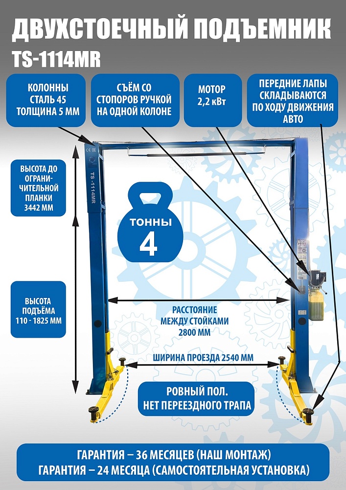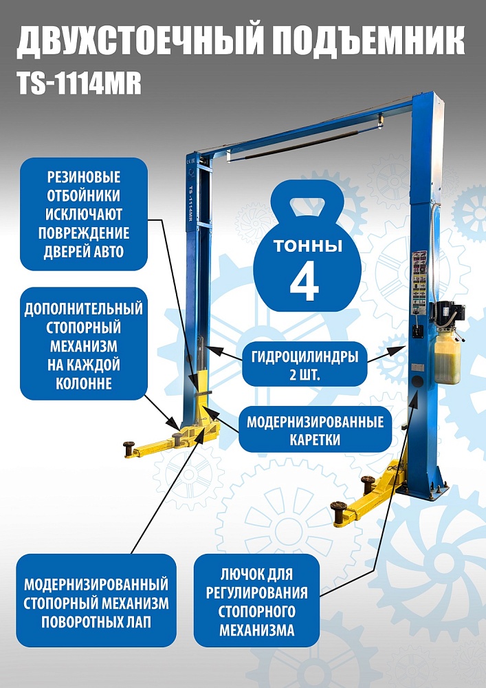 TS-1114MR подъемник 4 т, 2-х ст. электрогидравлический (2025) (380 V ТВ) купить в Краснодаре цена ✅ - Все для СТО