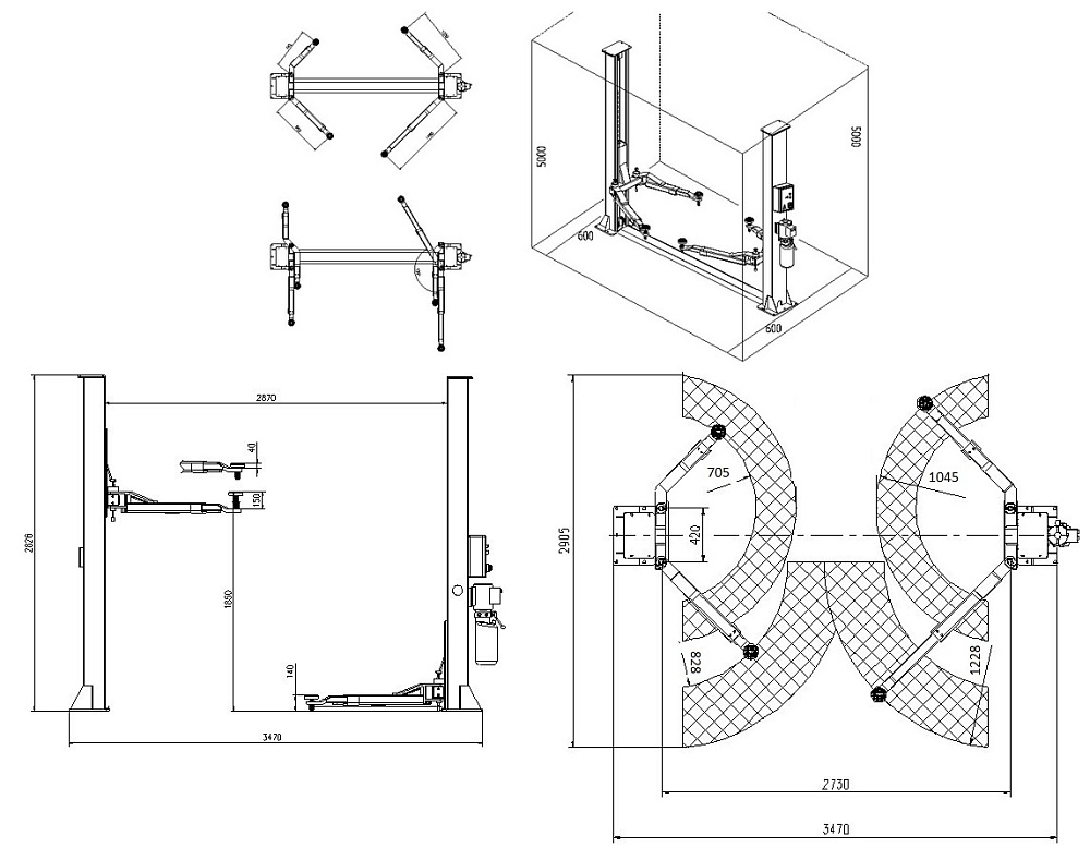 TS-4M Подъемник 2-хст. г/п 4 т с напольной рамой (380 V ТВ)