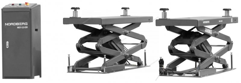 Подъемник ножничный 3,5т, с встроенными адаптерами для SUV авто, 220В (серый) NORDBERG N631-3,5G