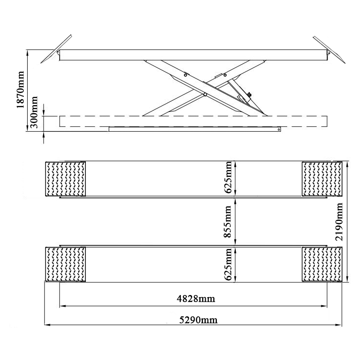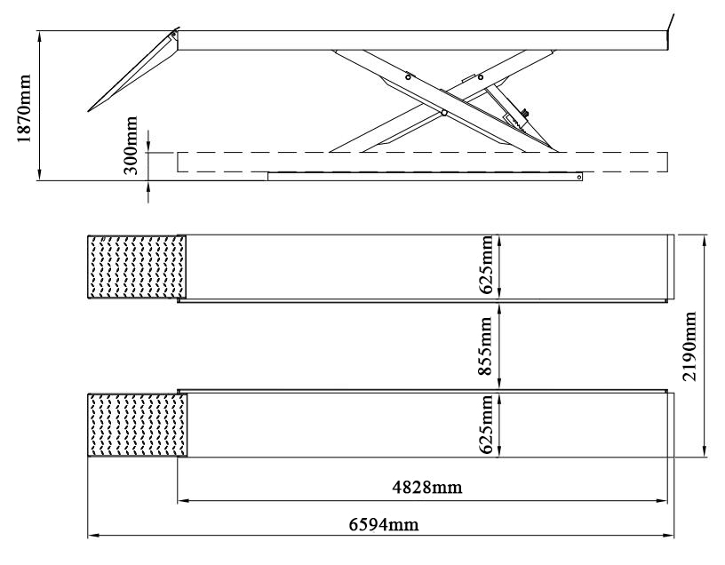 Ножничный  электрогидравлический   подъемник под сход развал, грузоподъемность 5.5т., длинна платформ 5018 мм.