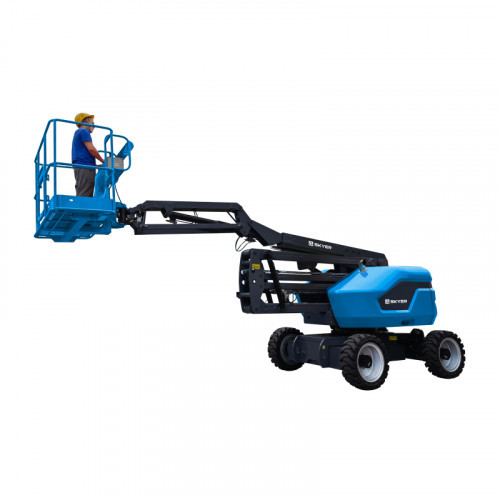 Самоходный коленчатый подъемник SKYER DKP2025 — это маневренная, высокопроизводительная техника с мощным дизельным двигателем. Рабочая высота модели составляет 20.1 м, максимальная грузоподъемность — 250 кг. Такое оборудование позволяет проводить работы даже в труднодоступных точках благодаря стреле с поворотным гуськом, коленчатыми сочленениями и корзиной, которая может вращаться на 160°.